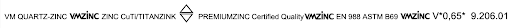 To maintain full traceability and provide professionals with assurance of the high quality of the zinc, all sheets and coils are ink-marked. This identification confirms compliance with EN 988, KOMO 7056, and ASTM 69 standards, as well as the requirements of the PREMIUMZINC label. It also reflects the high manufacturing standards and quality control processes applied to VMZINC products.
